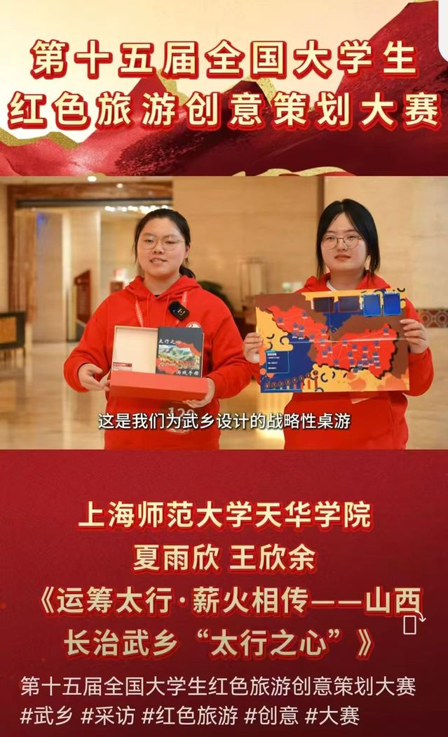 大赛中,由我校商学院旅游管理专业学生夏雨欣组队,其同班同学王欣余与上海理工大学学生李声洋为成员的参赛团队,在商学院陈素霞老师与艺术设计学院殷心悦老师悉心指导下,经过多轮激烈角逐,从众多优秀队伍中脱颖而出,荣获全国一等奖,实现我校在该项高水平赛事中的历史性突破。