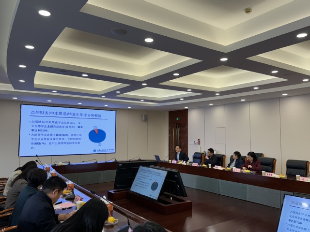 (商学院院长助理盛术俊汇报2025届毕业生就业及在校生情况)