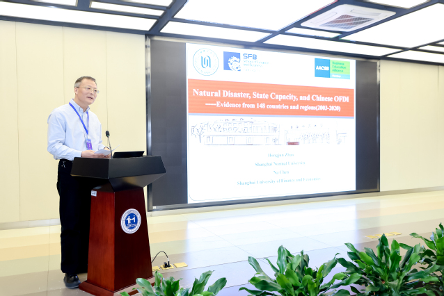 上午的专题研讨由上海市世界经济学会副会长孙立行研究员主持。上海师范大学商学院副院长赵红军教授基于对148个国家和地区的数据研究,揭示了国家治理能力在应对自然灾害、稳定外资流入中的核心作用。他的研究发现,东道国的国家能力,特别是“腐败控制”、“政府效能”和“法治水平”维度,能有效缓冲自然灾害对中国对外直接投资的负面冲击。这一结论不仅证实了中国对外投资遵循普遍的经济逻辑,也为“一带一路”沿线国家提升自身治理能力以吸引高质量投资提供了启示。