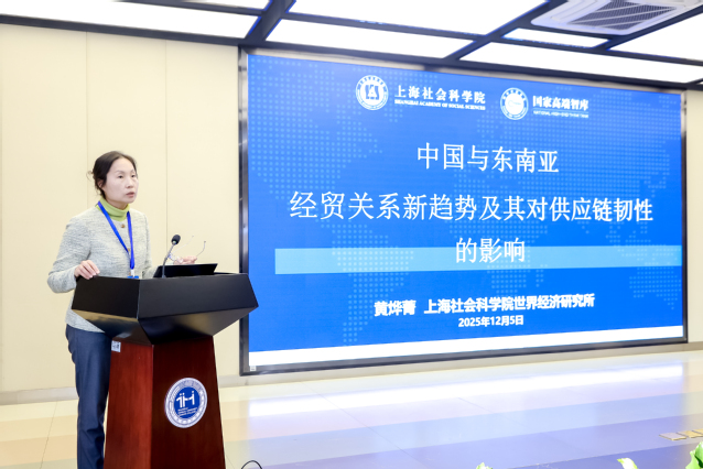 随后,上海师范大学天华学院商学院院长助理谢富生主持了下一环节。上海社会科学院世界经济研究所黄烨菁研究员系统梳理了中国与东南亚的经贸关系。她的研究显示,双方中间品贸易相互依存度极高,形成了紧密的垂直分工体系。尽管存在“美国因素”下的产业链重构压力,但东南亚国家因其产业链完整度有限,无法完全替代中国,反而在半导体等高端制造业领域与中国形成了“你中有我”的深度嵌入。这证明了基于市场规律的产业链合作,是应对外部干扰、提升区域韧性的有效路径。