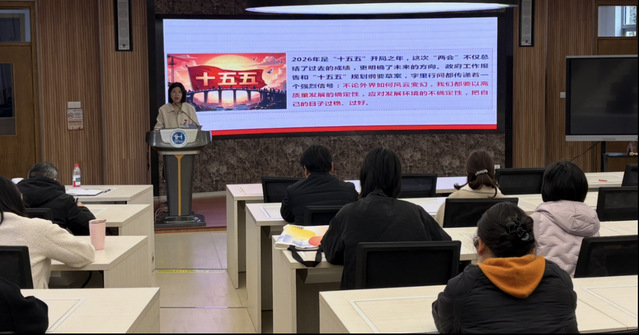 程书记分享了深入学习党的二十届四中全会精神和全国两会精神的体会。她指出党的指导方针、政府工作报告和“十五五”规划纲要草案,字里行间都传递着一个强烈信号:不论外界如何风云变幻,我们都要以高质量发展的确定性,应对发展环境的不确定性,把自己的日子过稳、过好。程书记结合近年国家社会经济发展的数据和案例,结合实地考察国内外产业的亲身经历,生动诠释了十五五规划中稳发展、稳创新、稳民生和稳安全的内涵和启示。她提出应当格外珍惜当前稳定发展的基础,响应党和政府提出高等教育担当教育强国“龙头”的号召。