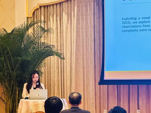 在分会场报告环节,张玉希老师作了题为 “Firm Complexity and Trade Credit” 的学术汇报。报告围绕企业复杂性与商业信用之间的关系展开,从研究问题、理论逻辑、实证思路等方面系统介绍了相关研究内容。汇报内容紧扣学术前沿,体现了学院教师在金融与企业行为研究领域的持续探索。报告结束后与现场专家学者围绕研究设计、变量构建、影响机制及后续拓展方向等问题进行了深入交流,获得了有益启发。此次参会不仅展示了我校教师良好的学术素养和科研精神,也体现了学院积极融入高水平学术共同体、不断提升教师科研能力和学术影响力的良好成效。
